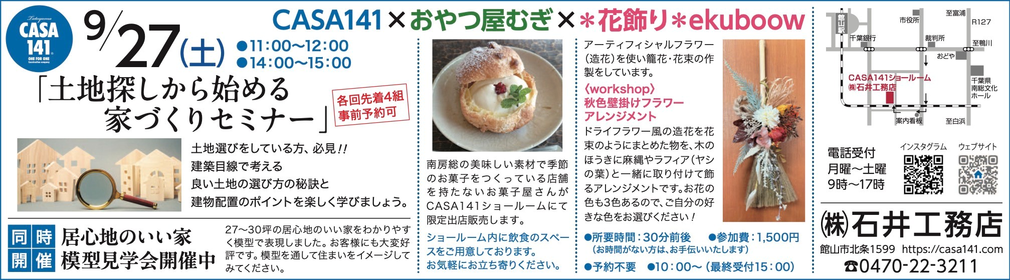 8/27(土) 土地探しから始める家づくりセミナー 同時開催 花飾りワークショップ おやつ屋むぎ出店
